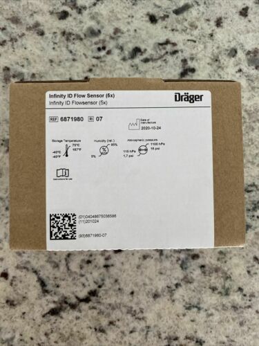 Drager Infinity ID Flow Sensor Ref #6871980. Each box comes with 5 brand new and sealed flow sensors. Any questions, please ask prior to purchasing.
